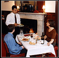 Fresh Scottish produce is still the basis of what we do today. Back when the chiefs of the Clan Galbraith called for victuals, the kitchen staff could only make do with whatever simple ingredients they had at hand - but of course that included salmon and trout, all manner of game, rich tangy cheeses and, in season, wonderful vegetables, wild mushrooms and berries ...Imagine having such a larder to choose from! Fresh Scottish produce is still the basis of what we do today - although we serve it up with rather more imagination and much better manners. Arthur's seat, our first floor restaurant, is a wood panelled room that features elegant candlelit dining with an a table d'hote menu as well as set meals at dinner. For non-residents, booking is essential. |